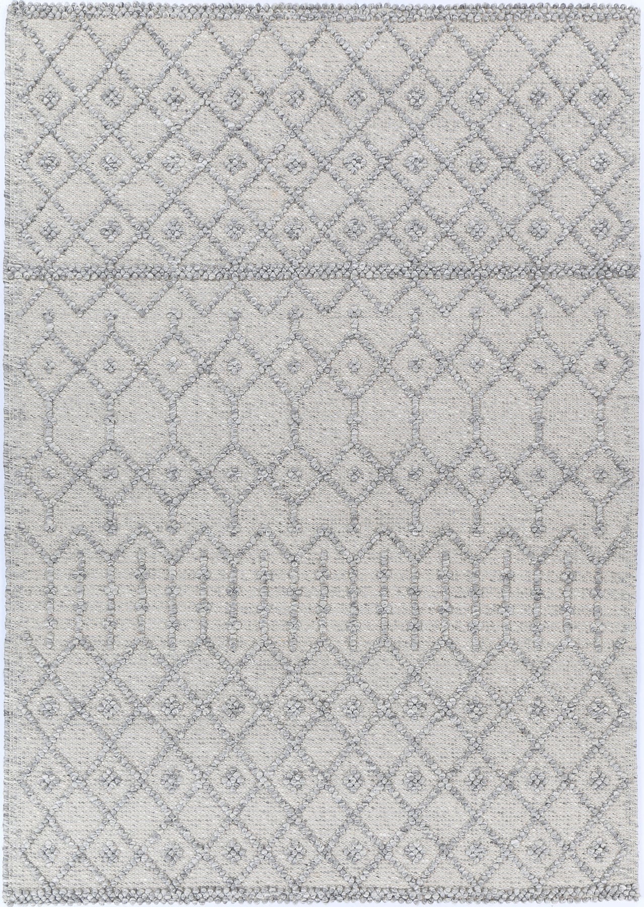 A Moroccan inspired textural rug, Dream features a flat weave construction and loop pile with cotton backing for longevity,