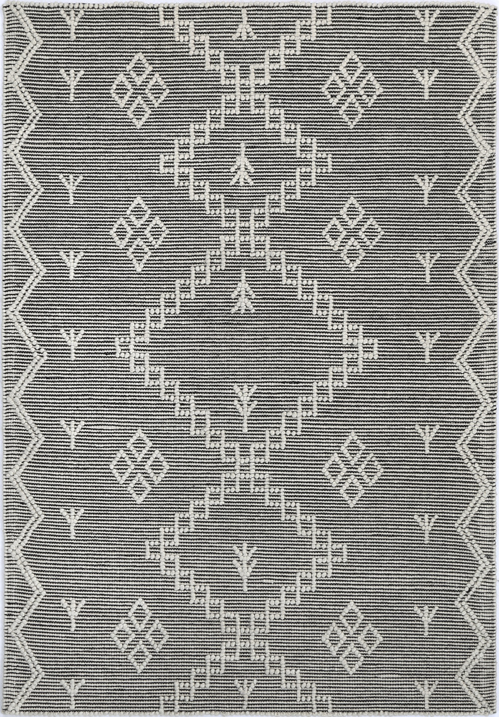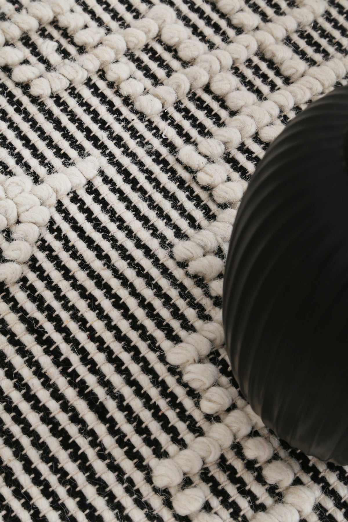 Complete any setting with this handmade rug. Soft, lustrous wool yarns are hand-tufted to create contrasting textures including oversized loops and flat surfaces that are rich in dimension; beautifully styled with classic geometric patterns. Crafted using a 70% Wool and 30% Polyester blend, this rug will accent any space with its calm and neutral colour palette making it the perfect choice to add the finishing touch to any room in the house.